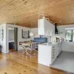 Neben einem Kamin bietet diese Villa Annehmlichkeiten wie ein Fernsehen mit mehreren Kanälen. Die Beautiful Home In Spottrup With Kitchen verfügt über ein Badezimmer mit einer Dusche.